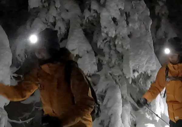 Return trip with Gondol Sälen, a guide, snowshoes and poles, headlamp, and a light snack.