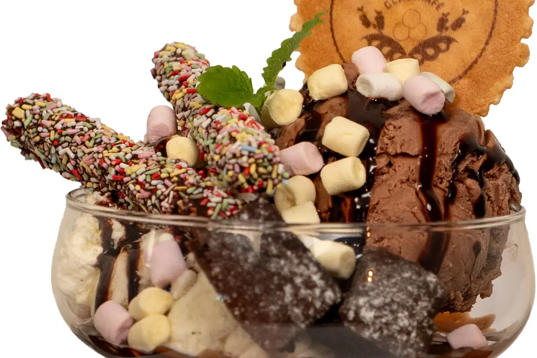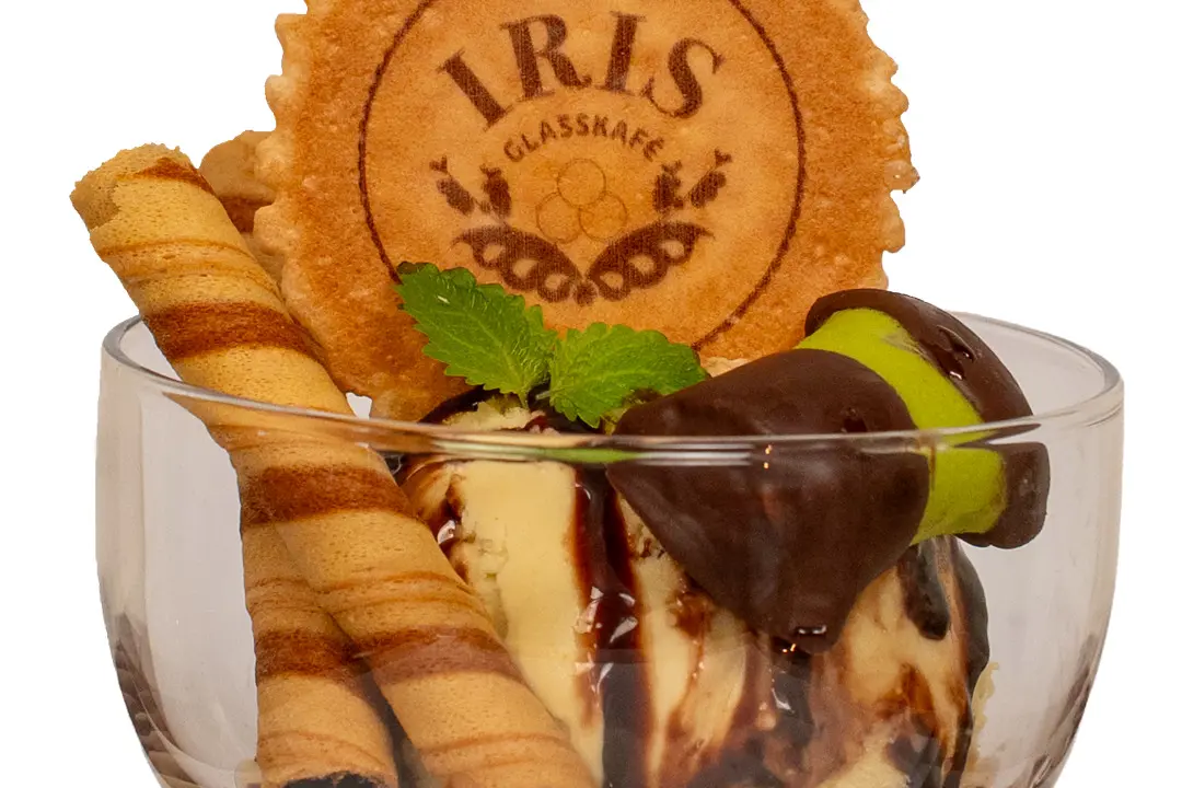 Here you can create your own ice cream dessert. Choose, for instance, vanilla ice cream with berries of your choice and cream, or top it with troll sprinkles, mini marshmallows, and a chocolate stick. Of course, you can also choose something tasty from our ice cream menu.