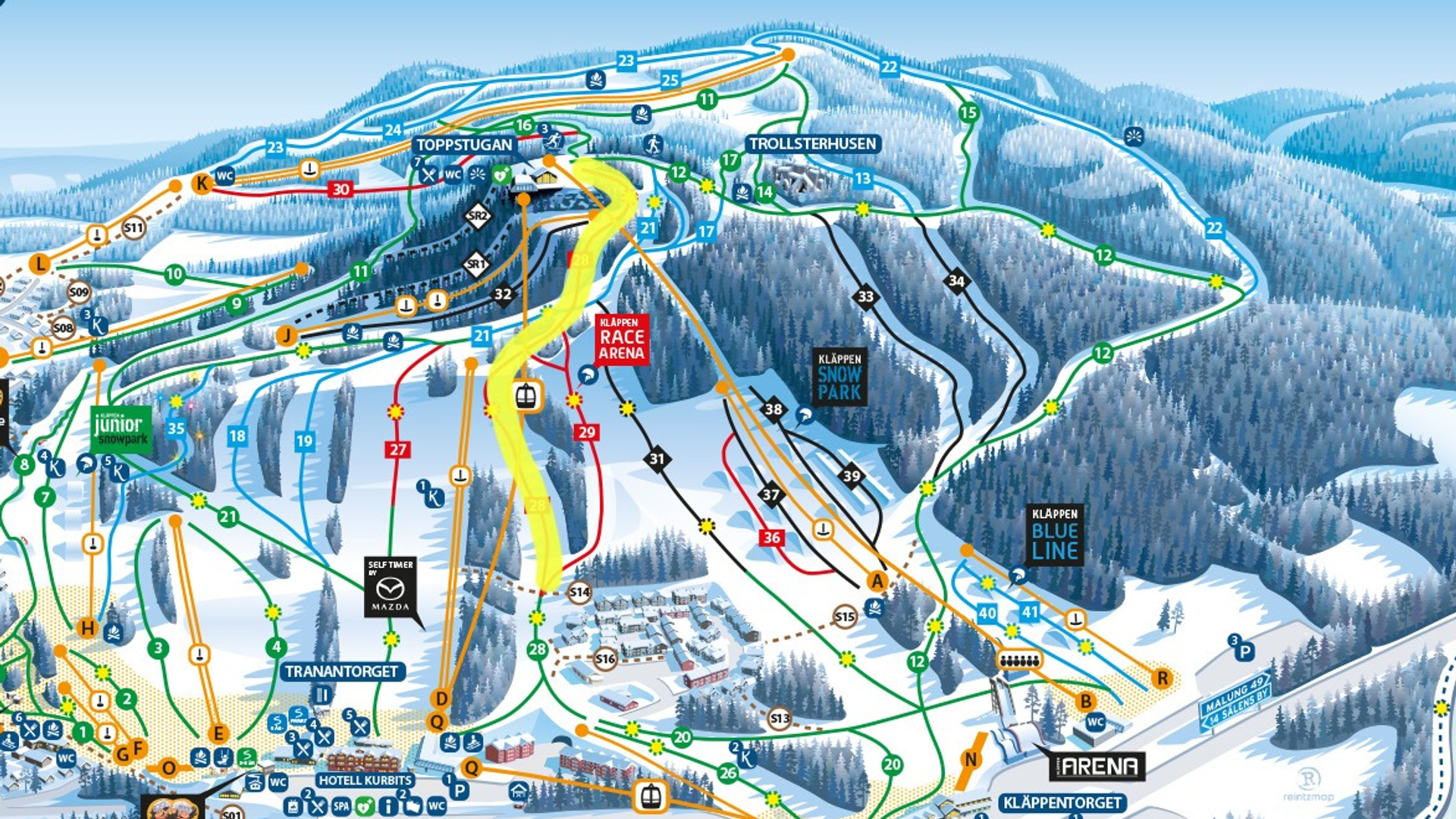 You will ski Super G on a course of approximately 1020 metres from the top of Kläppenberget. Everyone has a common start, and you can choose skis, snowboard or telemark. New for this year is that the course ends at Älgstråket instead of Familjebacken. At the finish line, there will be a prize-giving ceremony and a cosy moment at Tranantorget.