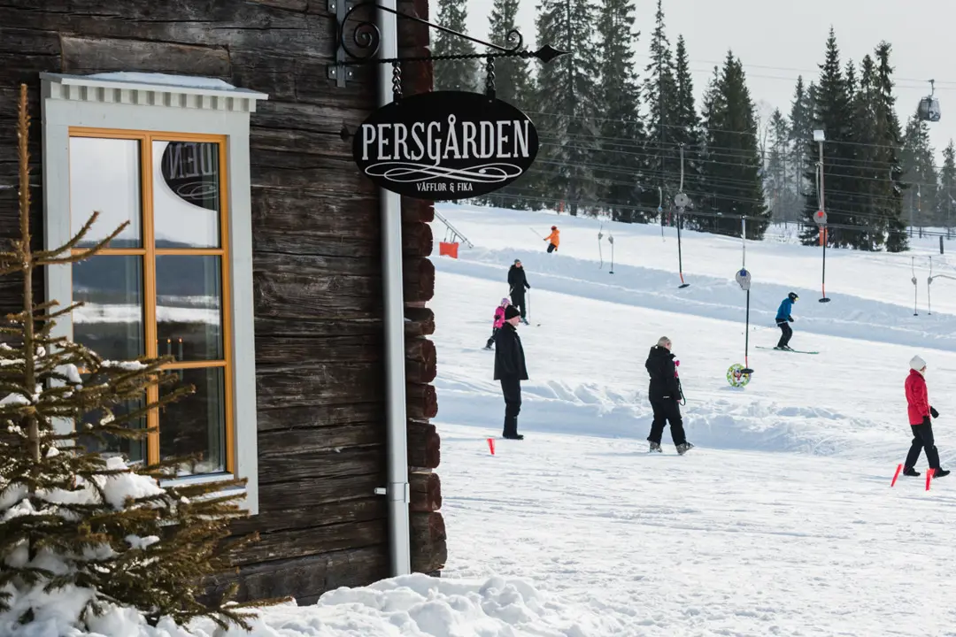 Just above the children's area, you will find our old Dalarna farm, Persgården. Here you are welcomed by the warmth of the crackling fire, the aroma of freshly baked waffles, and a homely atmosphere.
