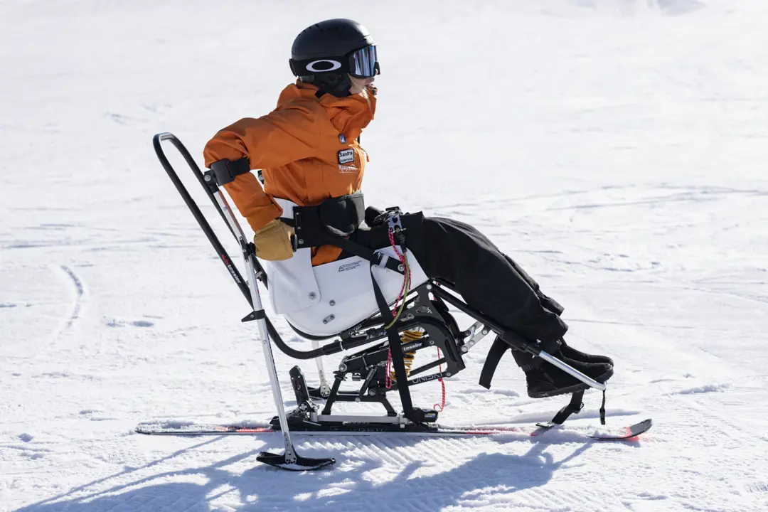 A sitski is suitable for those with good strength and balance in the upper body. You steer with gentle movements in your arms and upper body and use crutch poles to balance and refine turns. A sitski works excellently in both button lifts and chairlifts.