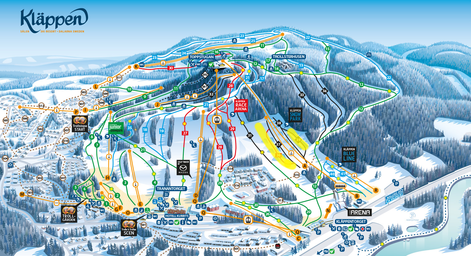 The competition takes place on the red and black lines in the main park and the half-pipe, and these lines and the half-pipe are closed during the competitions.