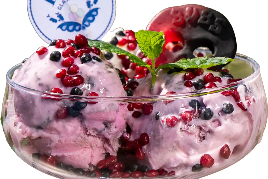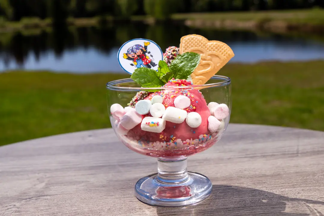 Here you can create your own ice cream dessert. Choose, for instance, vanilla ice cream with berries of your choice and cream, or top it with troll sprinkles, mini marshmallows, and a chocolate stick. Of course, you can also choose something tasty from our ice cream menu.