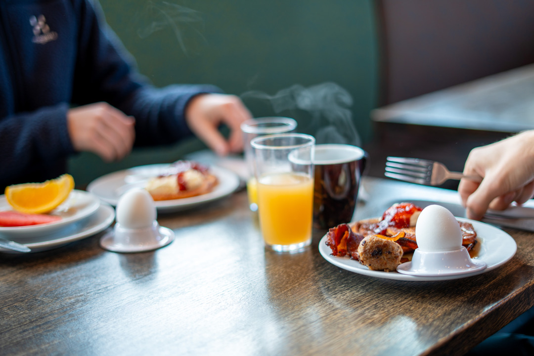 På Halster serverar vi en riktig livsnjutarfrukost med nybakat bröd, ostar och charkuterier, yoghurt och granola, varma rätter och färsk frukt. För oss är det viktigt att frukosten är generös, så att du ska kunna sitta kvar lite längre och njuta.